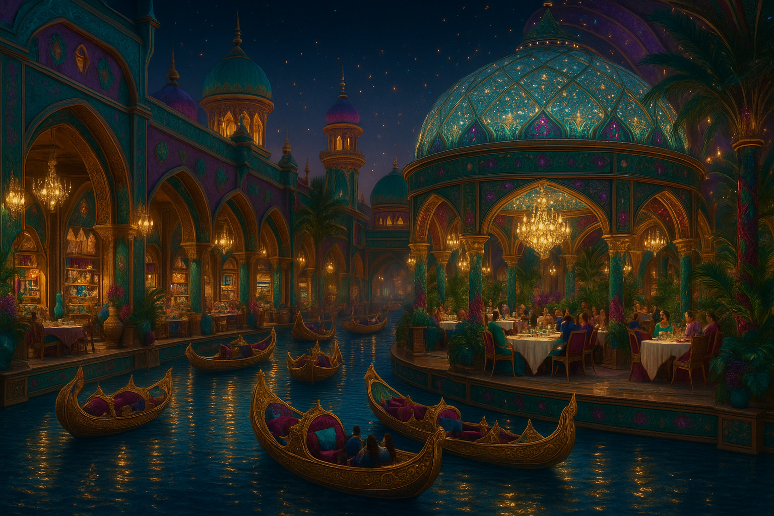 Designed with local residents in mind, this destination makes visiting the park as easy and joyful as an evening boat ride. Families moor their leisure boats at the shaded marina, greeted by themed concierge services, friendly character hosts, and immersive arrival pavilions styled like enchanted souks.